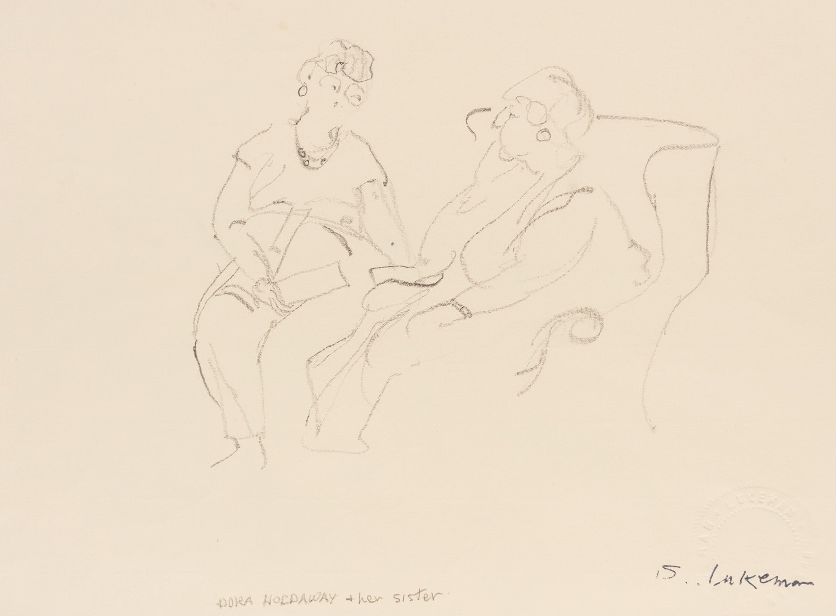 Edward (Ted) Lukeman (1924-1987) Dora Holdaway and Her Sister, 1986 graphite on board 21.5 x 28 cm
