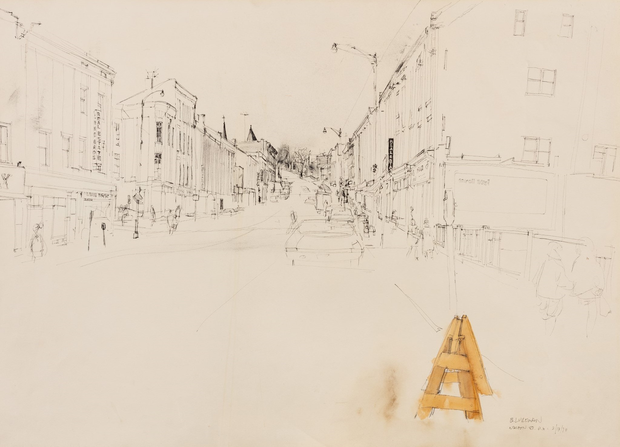 Edward (Ted) Lukeman (1924-1987) Main Street, 1970 ink and watercolour on board 56 x 78 cm