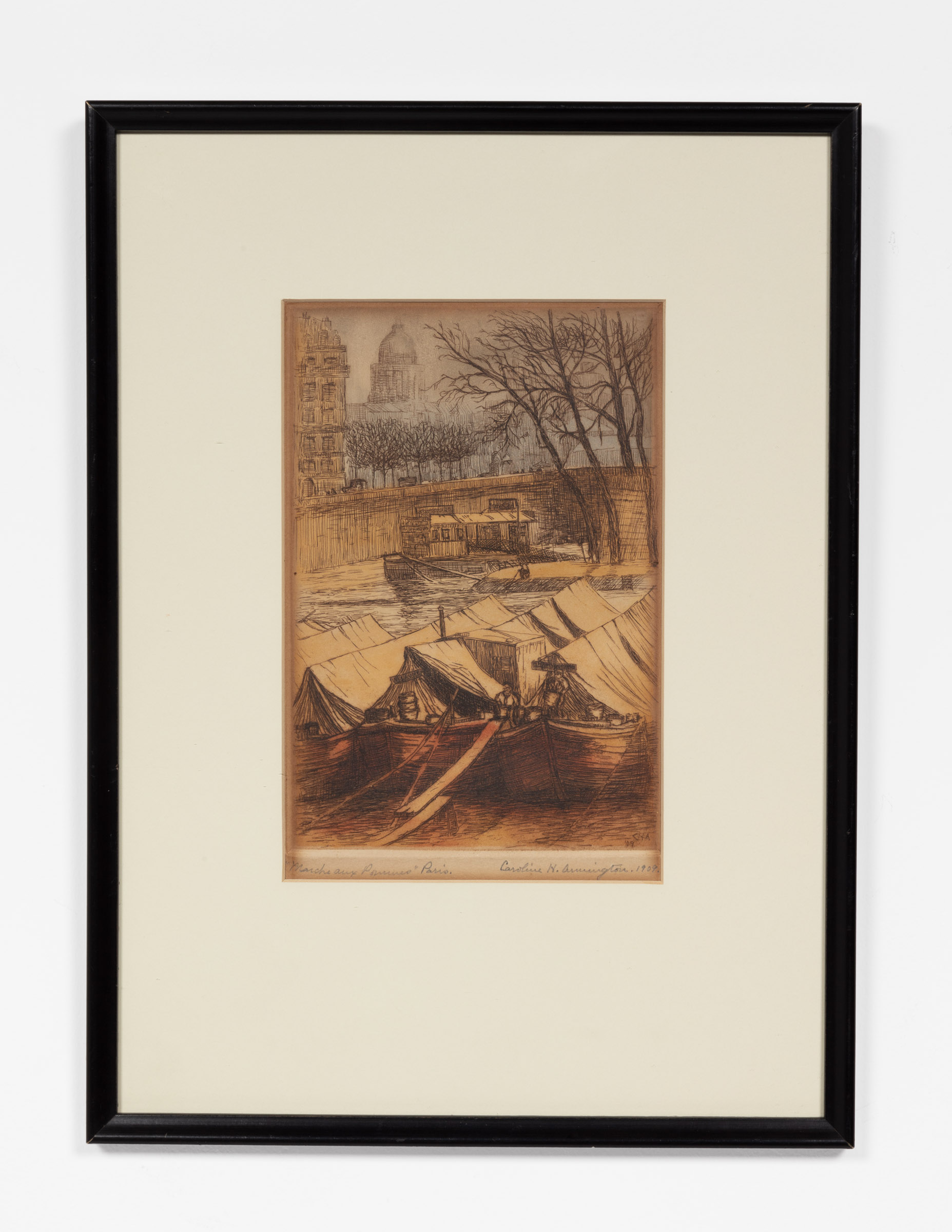 Caroline Helena Armington (1875-1939) Marché aux Pommes, Paris, 1909 etching 37.5 x 27.5 cm