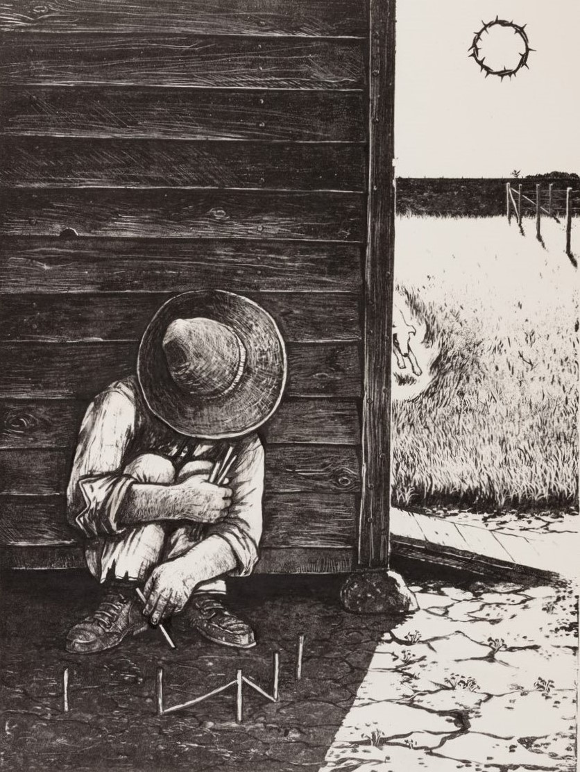 William Kurelek (1927-1977) The Hound of Heaven, n.d. coloured lithograph 28/100 66 x 51 cm